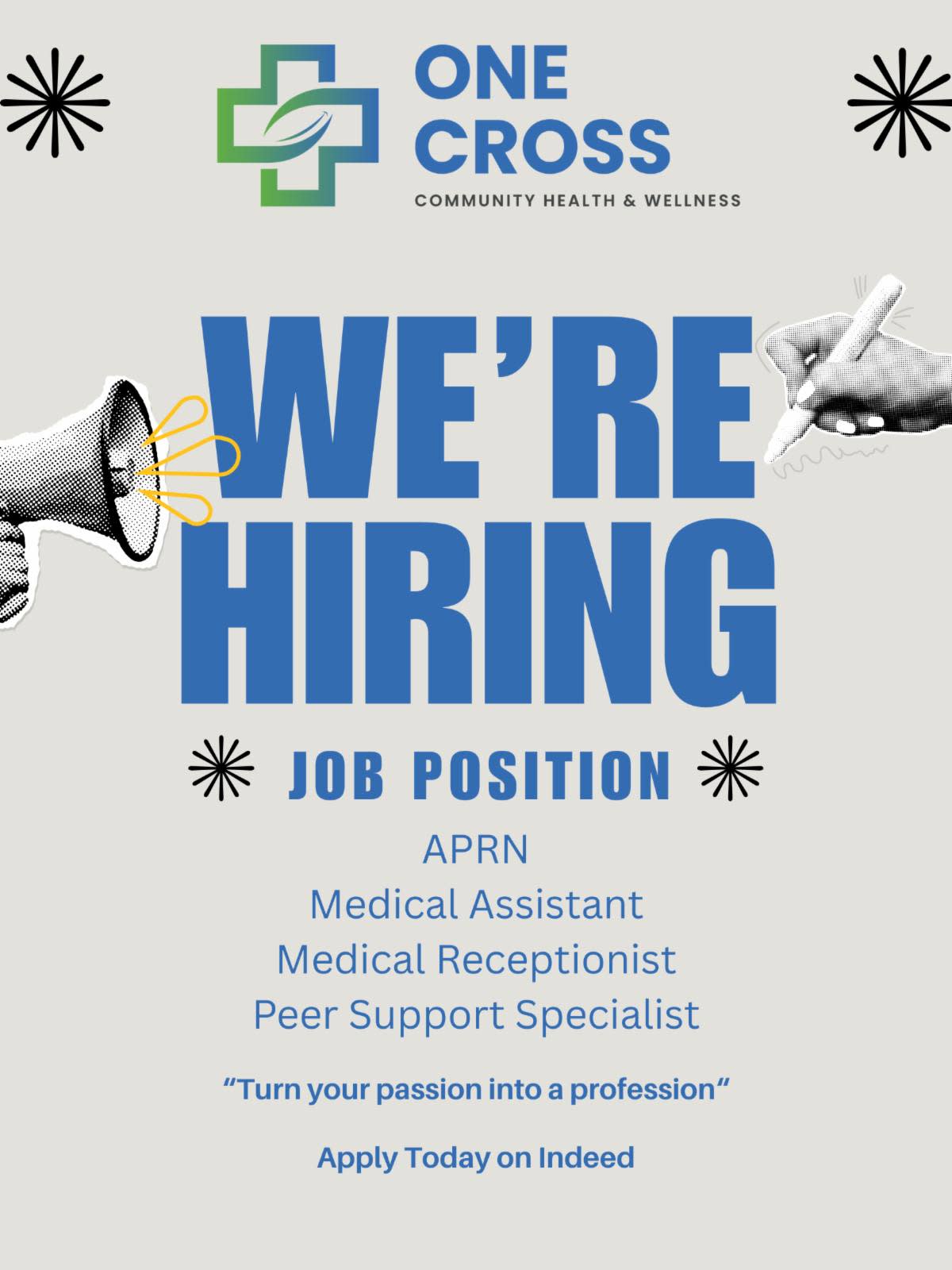 📣 We’re Hiring at One Cross Community Health and Wellness!