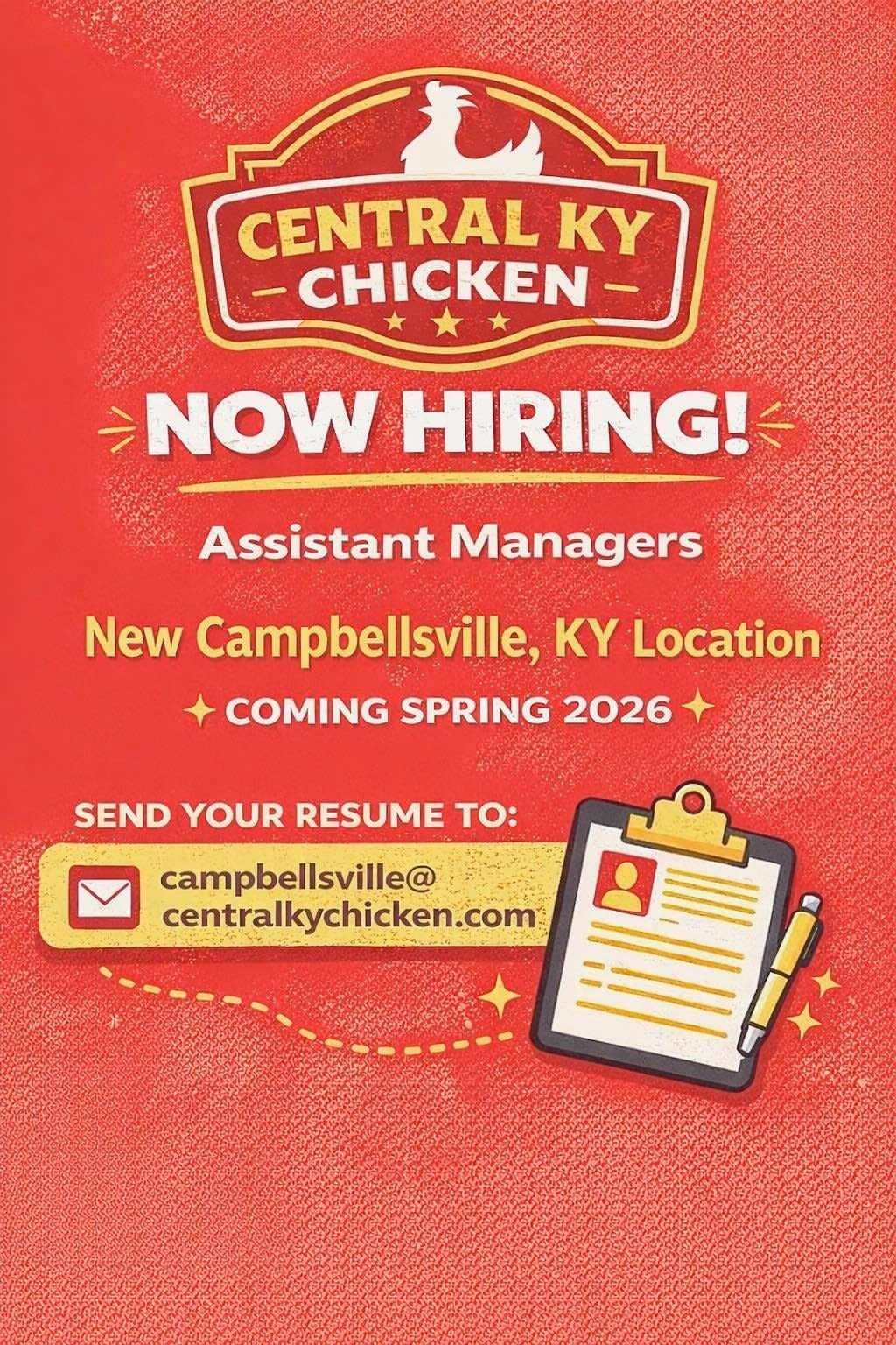 Send your resume to campbellsville@centralkychicken.comImages